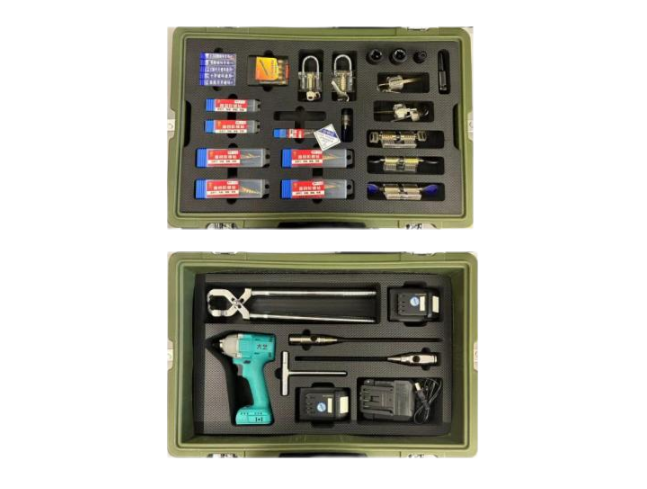 2.主要工具的構(gòu)成:充電式電鉆、套裝改錐頭、鑰匙、專用螺釘、尖嘴鉗、彎嘴鉗、T形扳手、錘子、開孔器、鉆頭,中心鉆旋轉(zhuǎn)銼、墊板、開鎖器、潤滑油、充電鋰電池、圓形定位套、充電器、微型切板機(jī)等。
