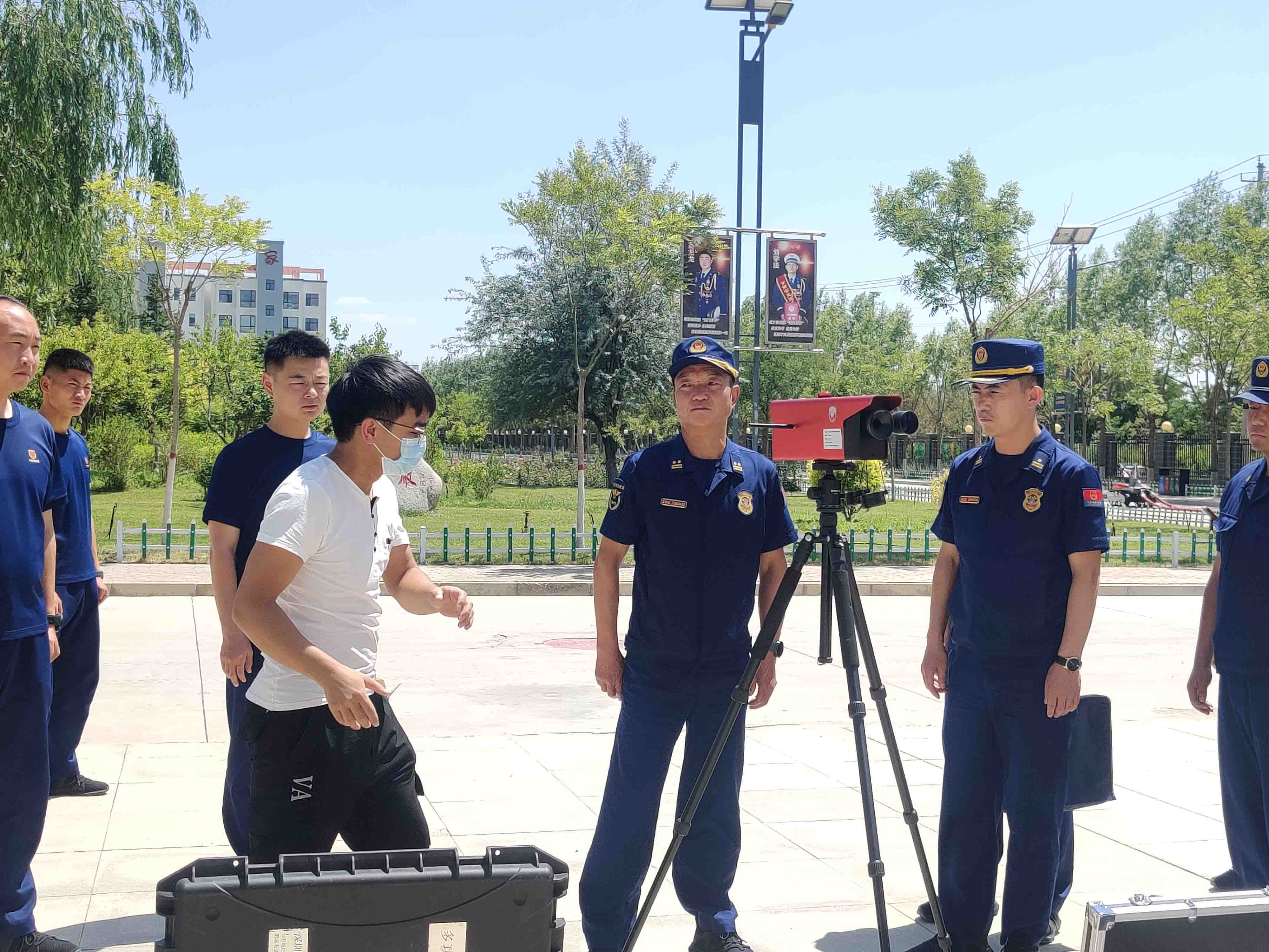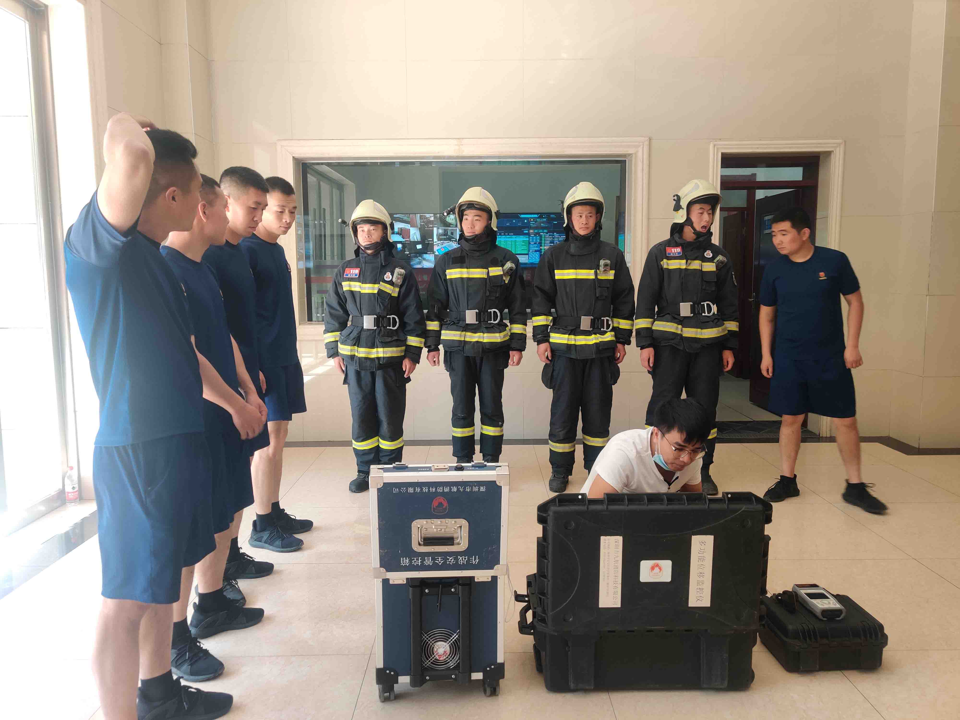 (技術(shù)人員向消防指戰(zhàn)員介紹最新款裝備)