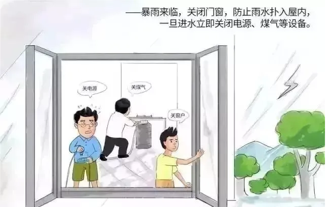 汛情來(lái)臨時(shí),及時(shí)關(guān)閉門(mén)窗,防止雷電直擊室內(nèi)。同時(shí),注意不要把花盆等物件放在窗外位置(容易掉落);